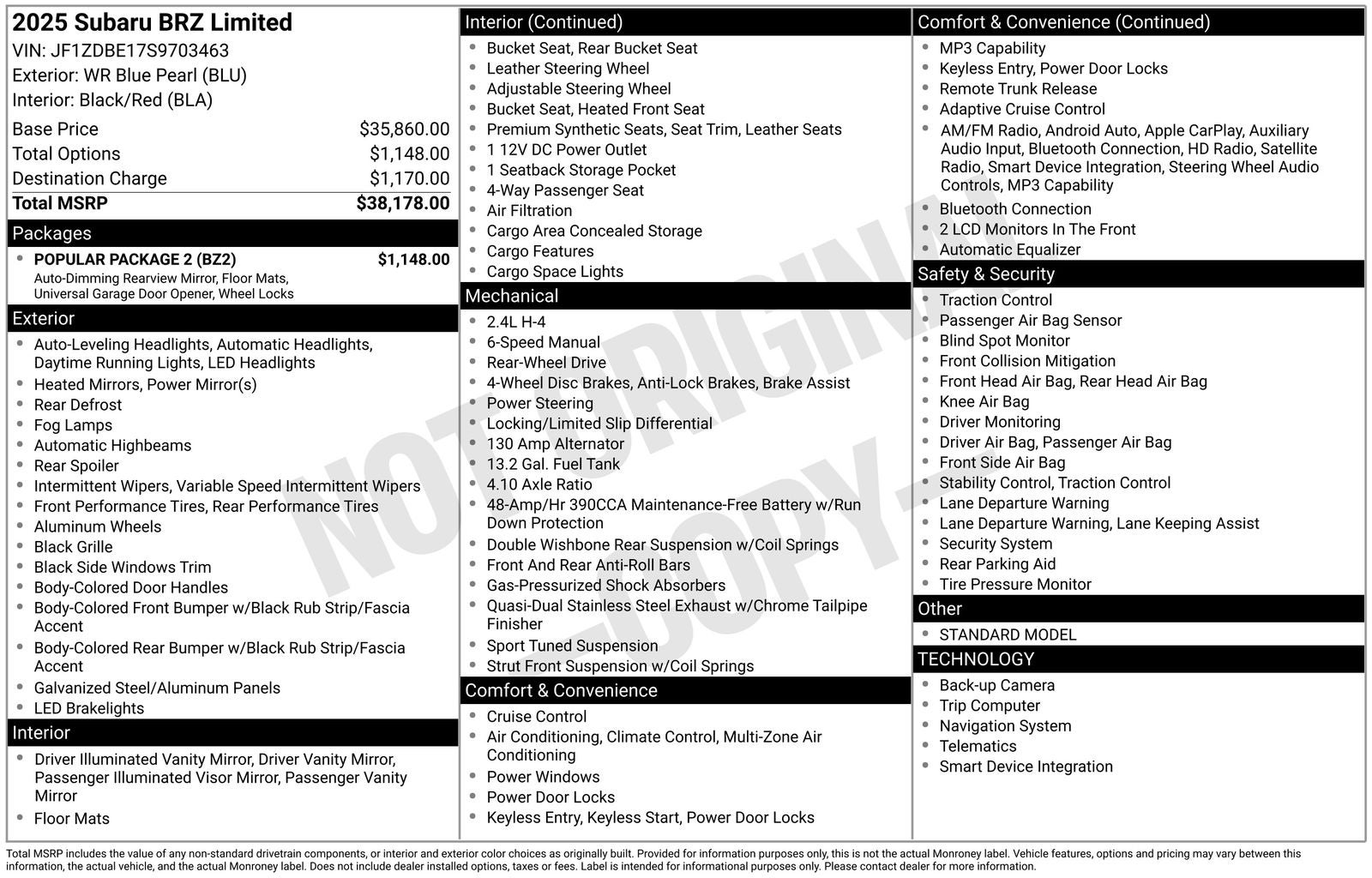 - Vehicle Name: Subaru BRZ