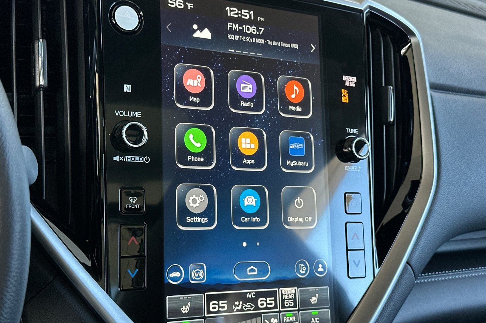 • Radio: Subaru 11.6" Multimedia System w/Navigation -inc: AM/FM stereo HD Radio, multi-touch gesture high resolution display screen, voice activated controls for radio and navigation, Bluetooth® audio streaming and hands-free phone connectivity w/SMS text messaging connectivity (refer to subaru.com for cell phone compatibility), TomTom navigation software w/what3words, iPod control capability, smartphone integration for Android Auto and Apple CarPlay w/full screen view and wireless connection, USB audio system update, audio system control switches, hands-free phone switches and voice command talk switch on steering wheel, harman/kardon quantum logic surround sound speaker system w/14 speakers, subwoofer and harman/kardon 792 watt equivalent maximum output amplifier, illuminated 3.5mm auxiliary input jack, illuminated USB A and C input/charge ports, SiriusXM w/360L (4 months free trial included/subscription required after) and SiriusXM Travel Link (4 months free trial included/subscription required after)