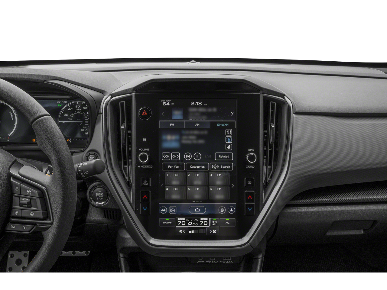 - Radio: Subaru 11.6" Multimedia Navigation System -inc: valet mode, AM/FM stereo, HD Radio, multi-touch gesture high resolution display screen, voice activated controls and navigation, Bluetooth® audio streaming and hands-free phone connectivity, Bluetooth® hands-free SMS text messaging connectivity, TomTom navigation software w/what3words, iPod control capability, smartphone integration: wired and wireless Android Auto w/full screen view and wireless Apple CarPlay w/full screen view, USB and Over The Air (OTA) audio system update, TomTom navigation system update: USB/map Over-the-Air (OTA) (3 years free map updates), steering wheel audio system and Bluetooth® control switches, 6 speakers (2 dash panel tweeter speakers, 2 front door speakers and 2 rear door speakers), illuminated 3.5mm auxiliary input jack, illuminated front USB A and C input/charge ports, connected services operation indicator, SOS emergency assistance: red SOS button and enhanced roadside assistance: blue i-button