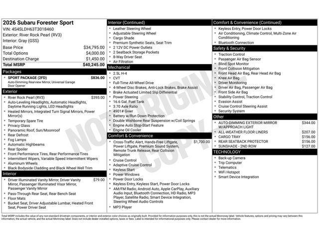 View Specials2026 Subaru Forester Sport