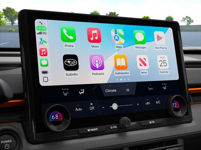 - Radio: Subaru 14" Multimedia System -inc: AM/FM stereo, HD radio, multi-touch gesture high resolution display screen, cloud navigation system (navigation subscription required), Bluetooth® audio streaming and hands-free phone connectivity (refer to subaru.com for cell phone compatibility), Bluetooth® hands-free SMS text messaging connectivity (refer to subaru.com for cell phone compatibility), SiriusXM (4 months free trial included/subscription required after), smartphone integration: Android Auto and Apple Carplay w/full screen view and wireless connection, integrated streaming (30 days trial included/subscription required after), assistant w/voice control system w/microphone located in headliner, steering wheel talk switch, cloud navigation operation (subaruconnect subscription required), integrated streaming operation (subaru connect subscription required), USB and Over The Air (OTA) audio system update, 6 speakers, dual Qi (15W each), wireless charging pad, illuminated driver USB C input/charge port and illuminated passenger USB C charge port
