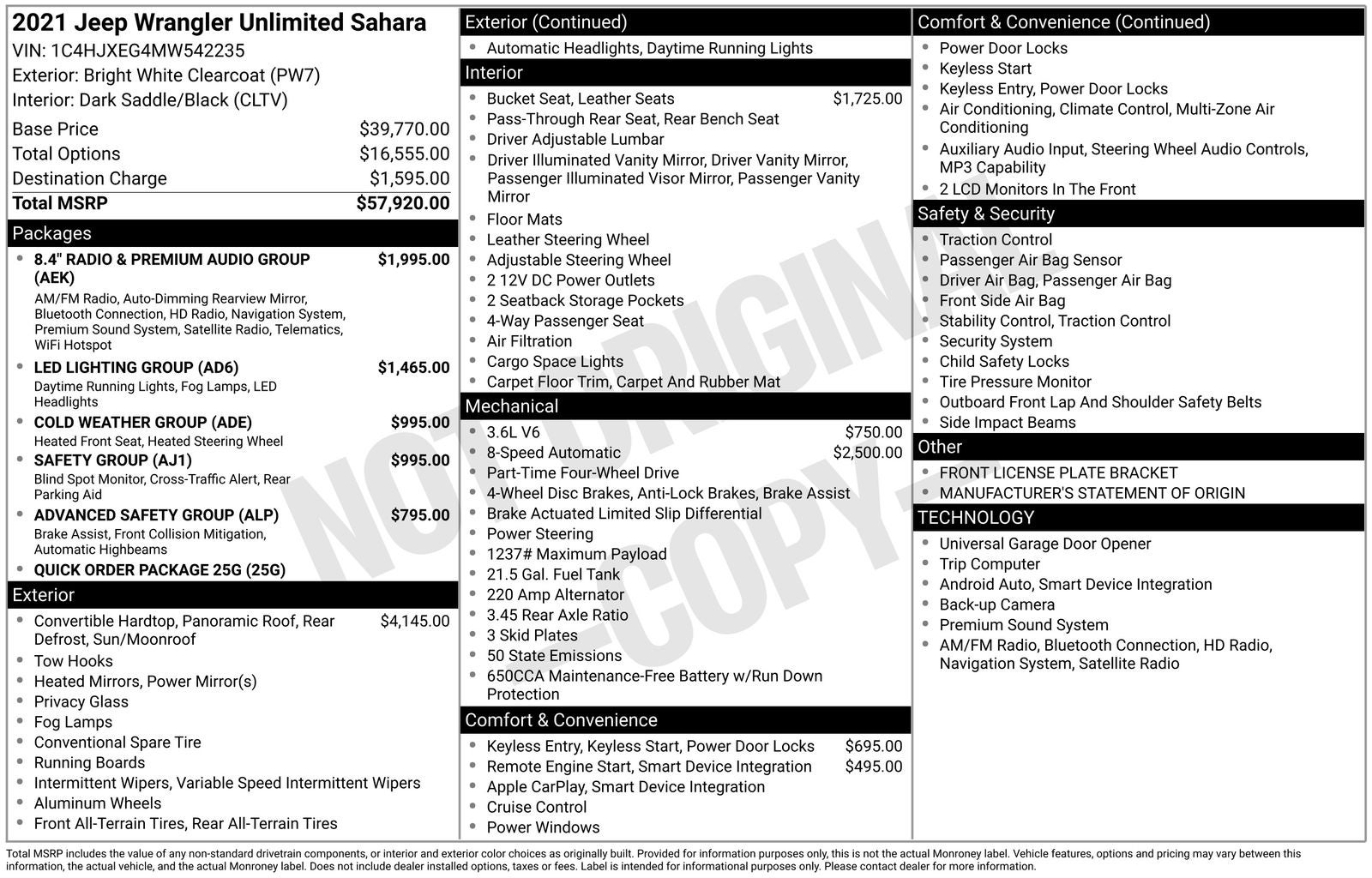 The Manufacturer's Suggested Retail Price excludes tax, license, dealer fees and optional equipment. Dealer sets final price.