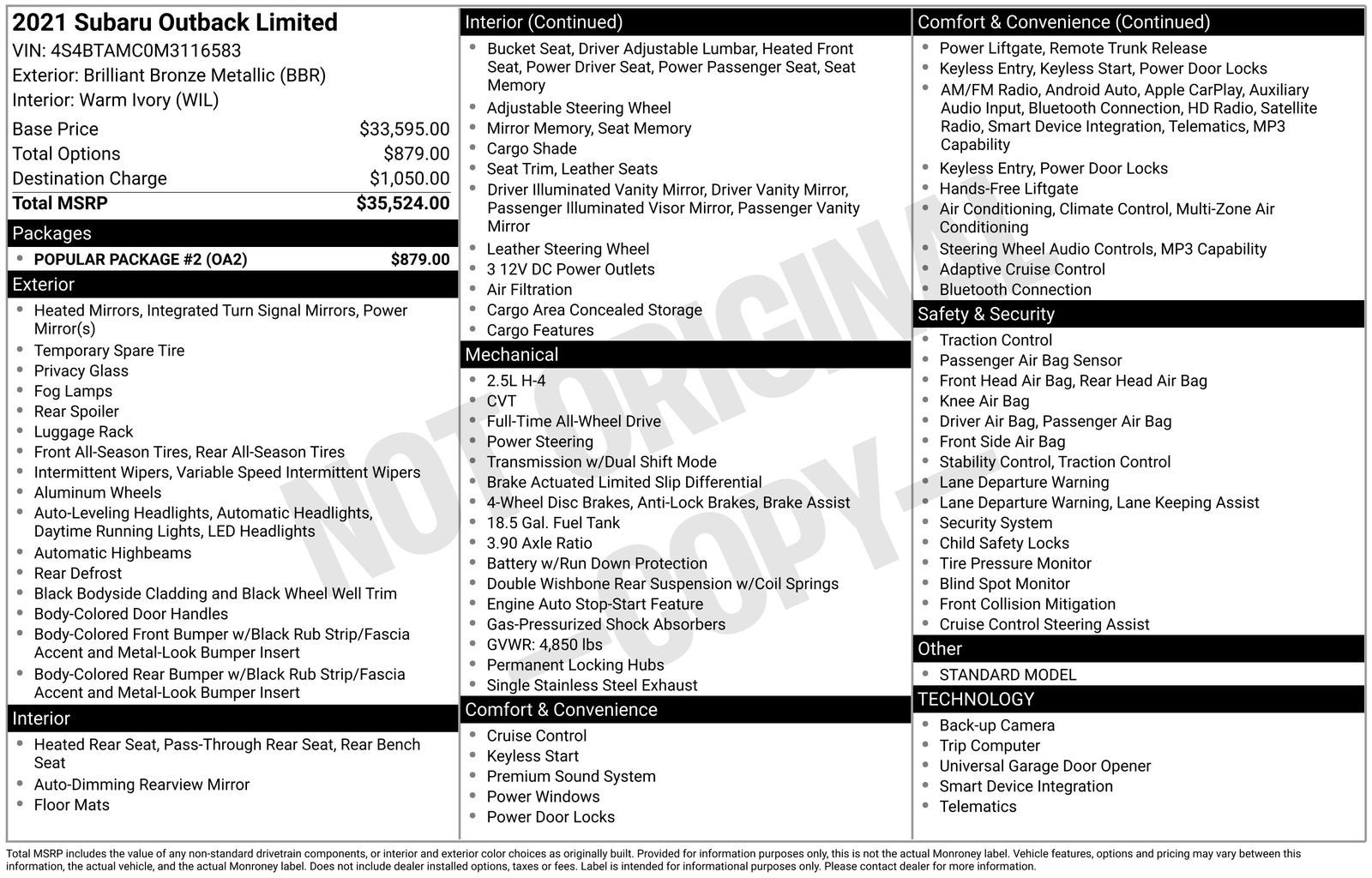 - Vehicle Name: Subaru Outback