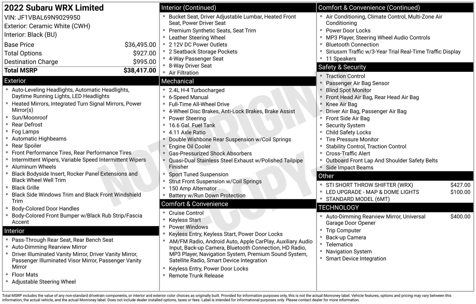- Vehicle Name: Subaru WRX