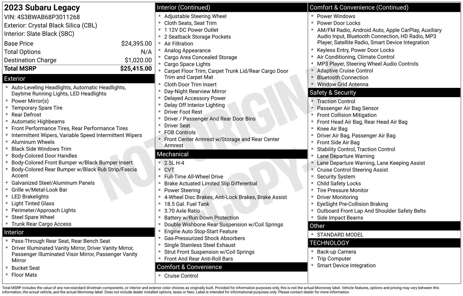 - Vehicle Name: Subaru Legacy